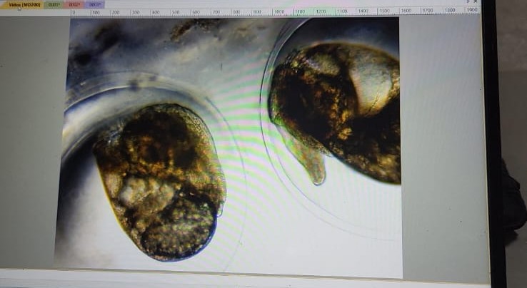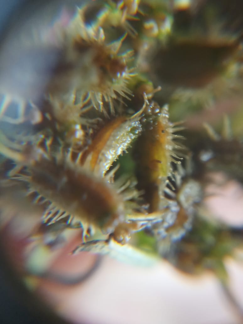 b. looking at tiny organisms, volcanic soil and other fascinating objects under a powerful microscope